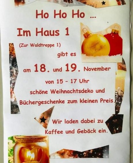Weihnachten naht mit großen Schritten… . Wer sich noch mit (gebrauchten) Dekorationsartikeln ausstatten möchte, Lesestoff für die kalte Jahreszeit benötigt oder einfach nur Lust auf einen herbstlichen Plausch bei Kaffee und Gebäck hat, findet hier die passende Veranstaltung!